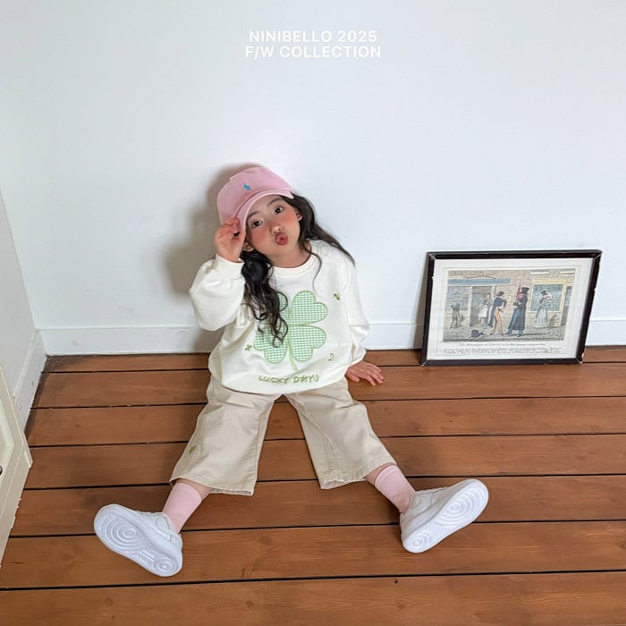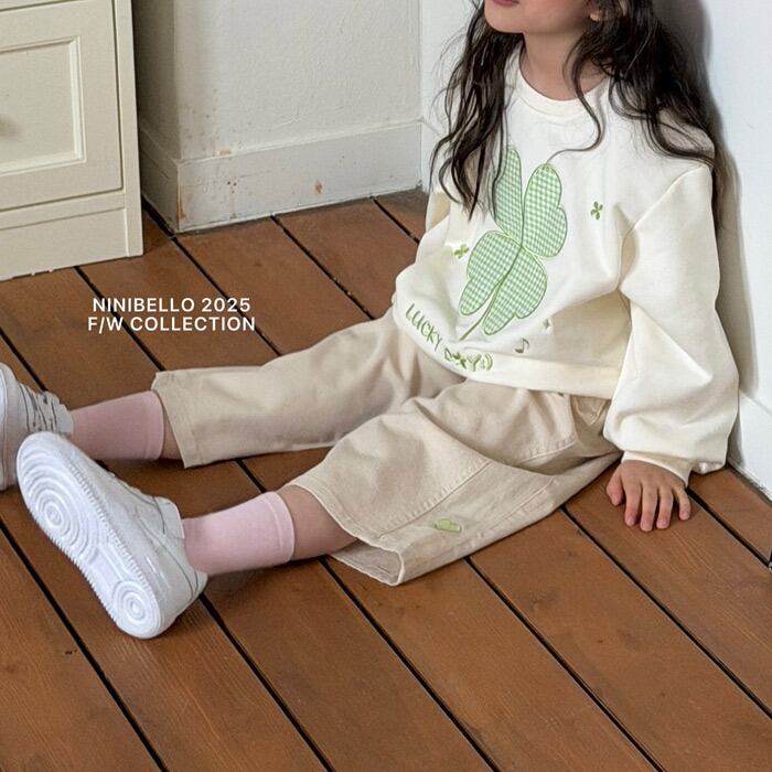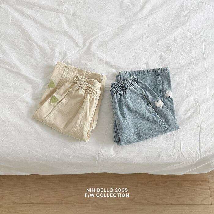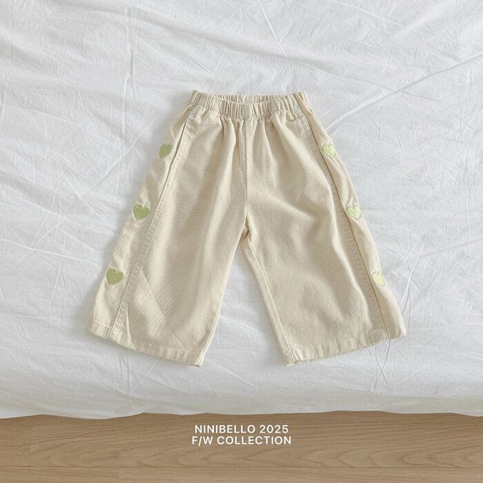 《春予約》ninibello Heart embroidery panel pants (natural)