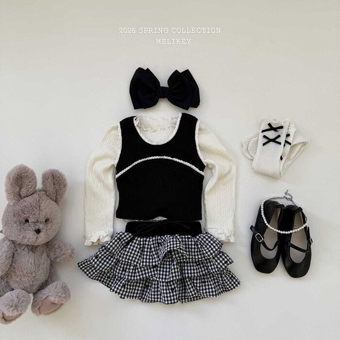 《春予約》Melikey check ribbon cancan skirt (kids&Jr.)