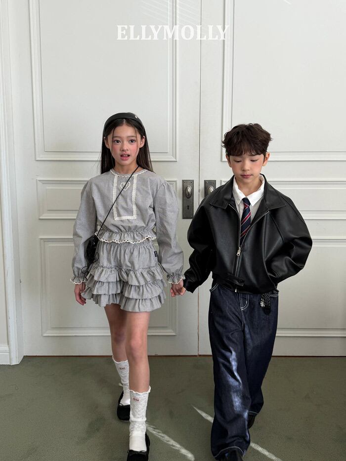 《春予約》ELLYMOLLY Lulu check blouse (kids&Jr.)