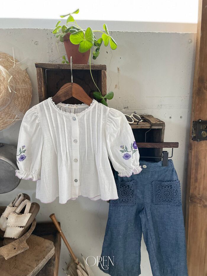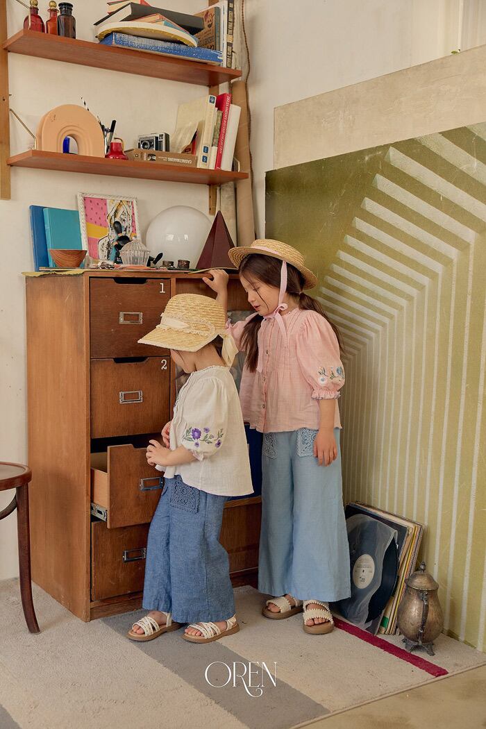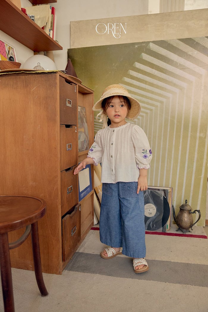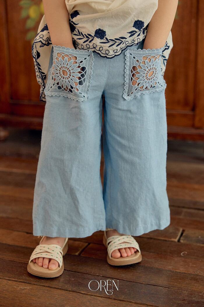 《夏予約》OREN Mare lace linen blue pants