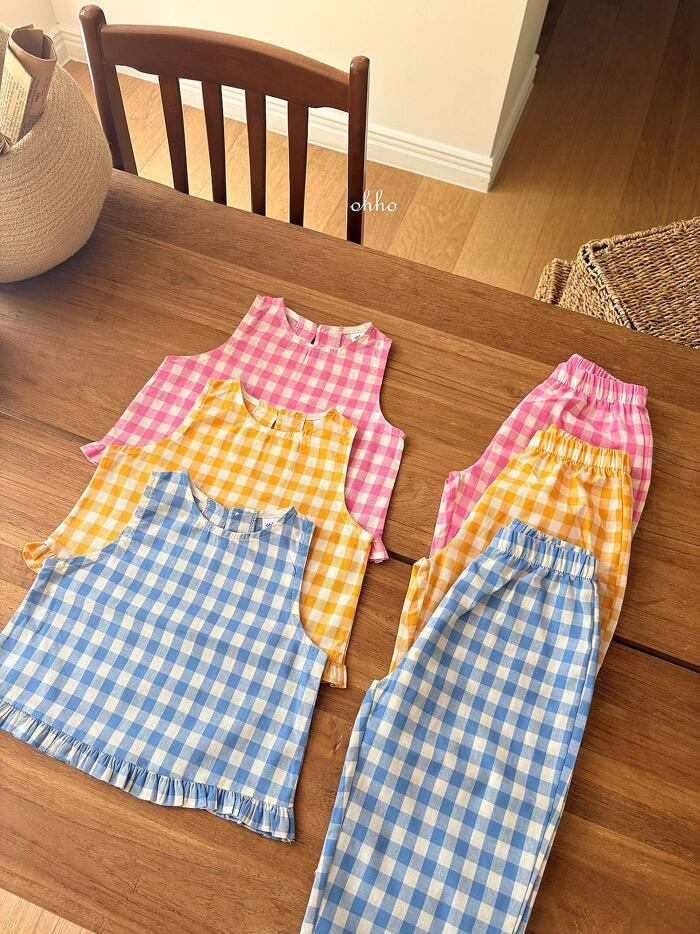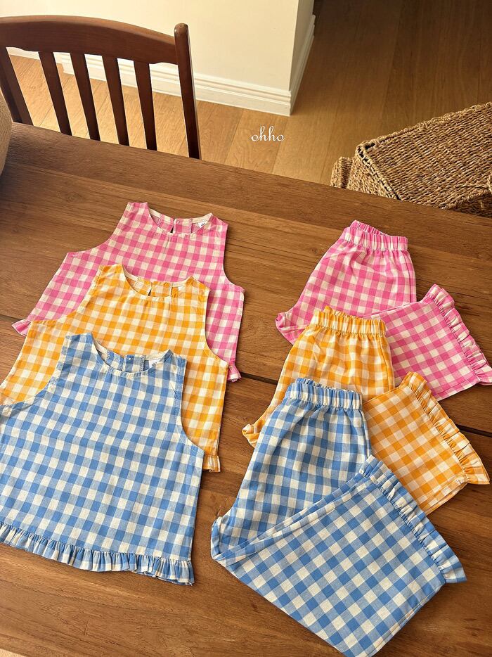 《夏予約》ohho gingham frill sleeveless