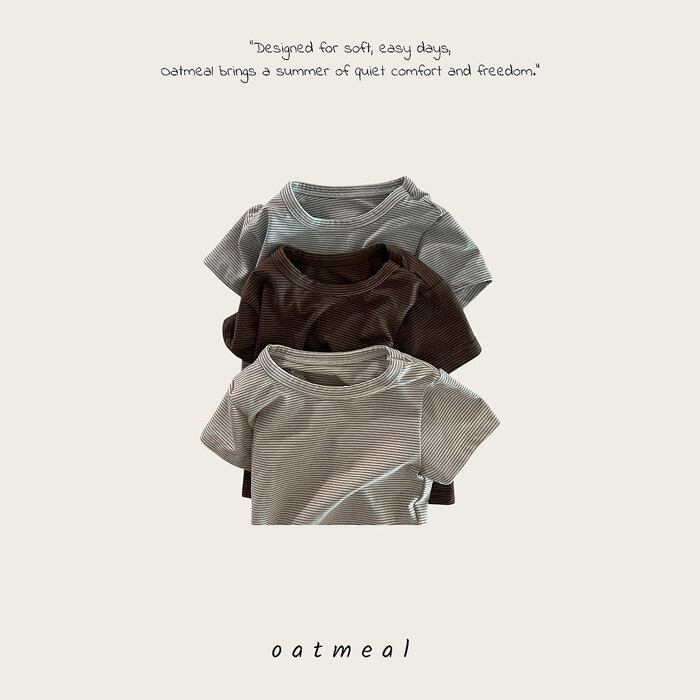 《夏予約》 oatmeal cos stripe round T